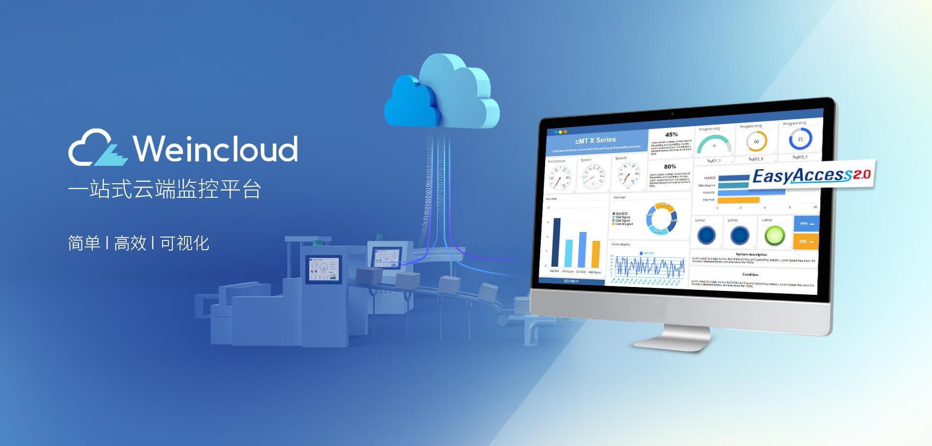 Weincloud 集結(jié)EasyAccess2.0遠(yuǎn)程監(jiān)控服務(wù)及Dashboard云端儀表服務(wù),將設(shè)備資料數(shù)據(jù)上云并以視覺化呈現(xiàn),協(xié)助管理者實(shí)時(shí)掌控現(xiàn)場產(chǎn)線狀態(tài)。